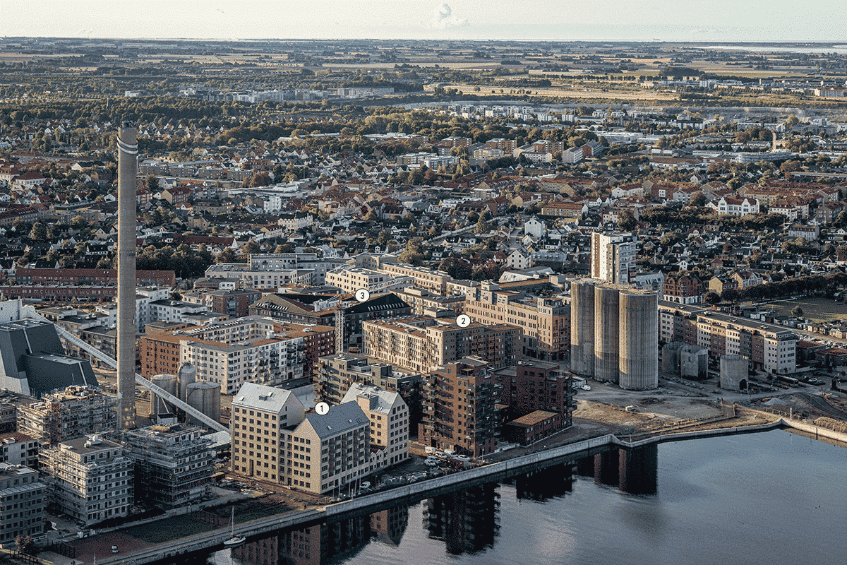 Kvarteret Sjöscouten (1), samt kvarteren Halvslaget (2) och Pålsteken (3) i Limhamns Sjöstad.