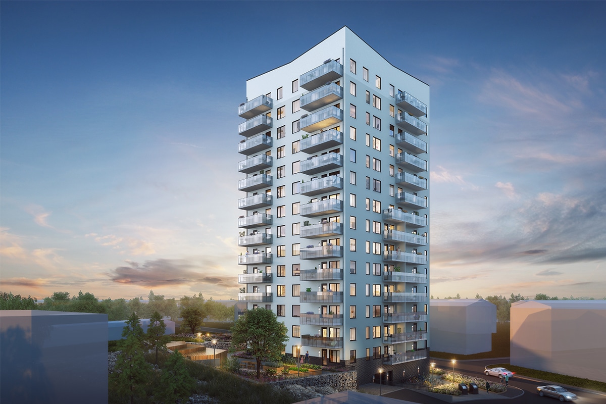 På uppdrag av Riksbyggen uppför Tornstaden 70 bostadsrätter i Bandhagen i Stockholm. Lägenheterna fördelas på femton våningar och byggs enligt Miljöbyggnad Silver.