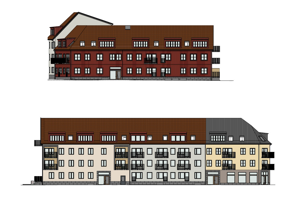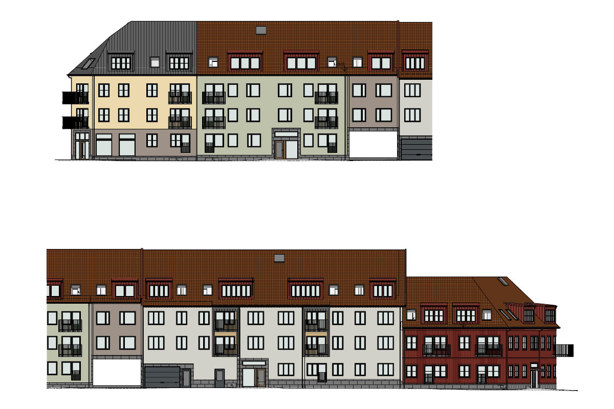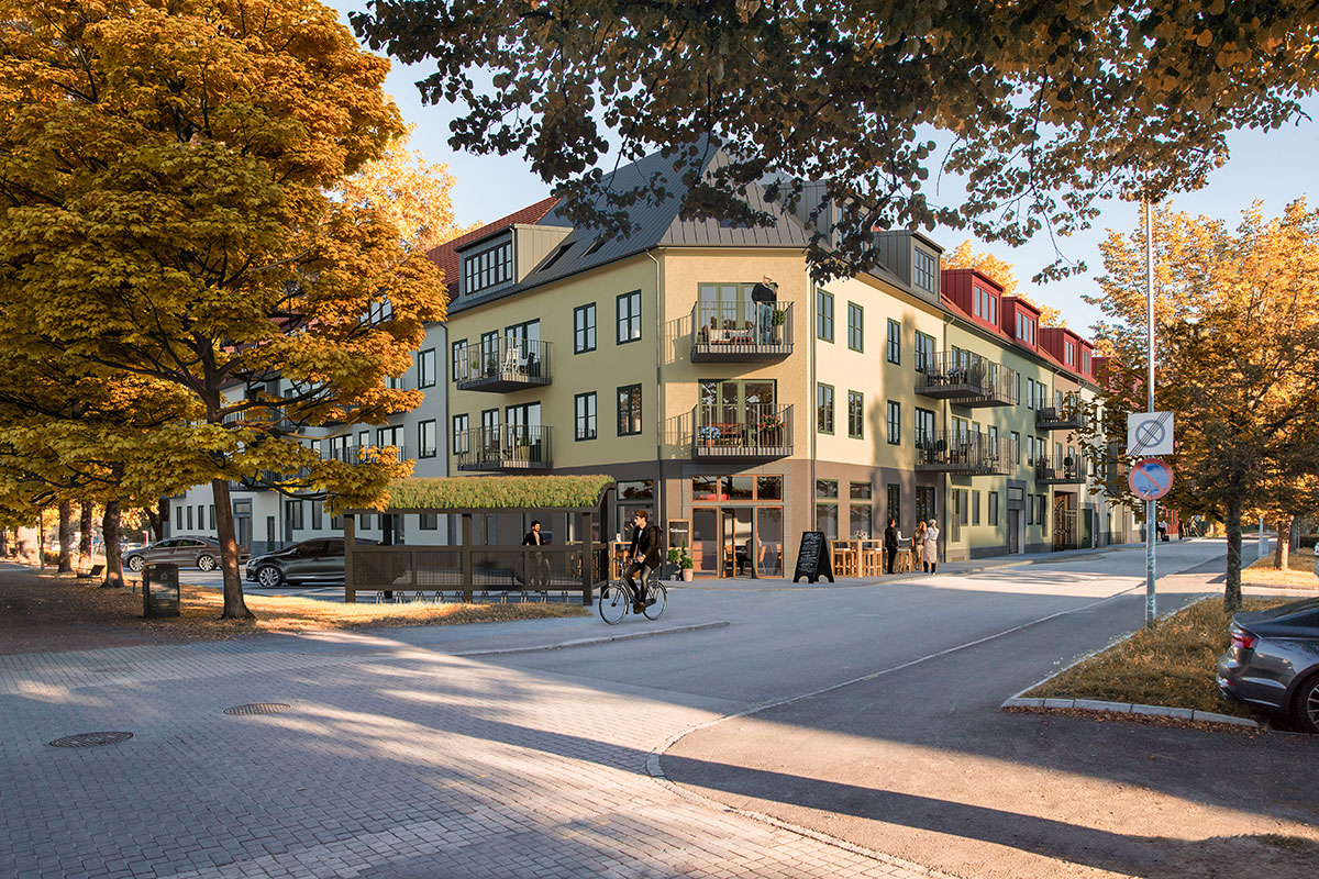 Kvarteret gränsar till den äldre delen av staden och innehåller 122 bostäder och en mindre lokal i gatuplan. Husen får varierade fasader av trä och puts, samt en behaglig färgsättning för att smälta väl in i den närliggande äldre bebyggelsen.