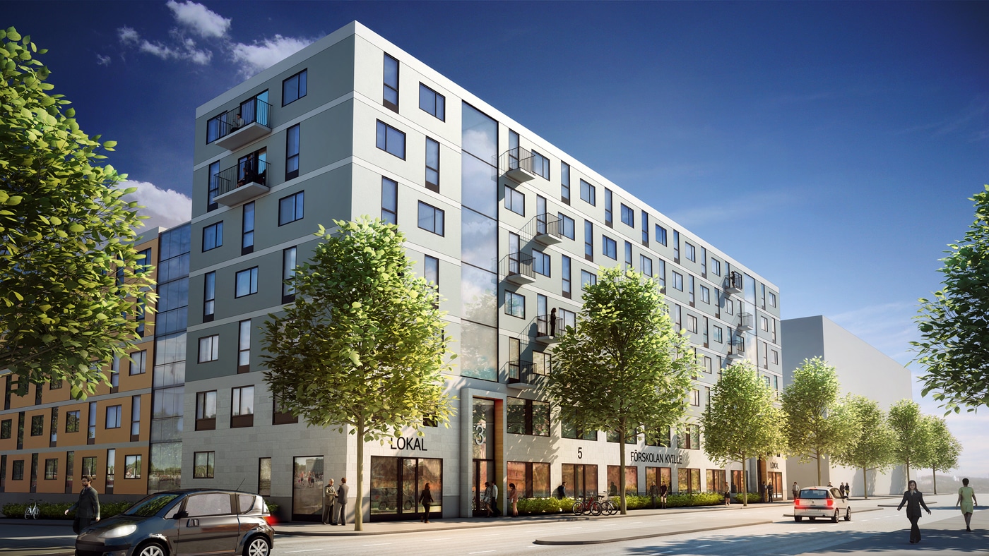Kvillebäcken Lott F1 innehåller 98 hyresrätter, en förskola samt ett underliggande garage. Projektet uppfördes på uppdrag av Wallenstam.