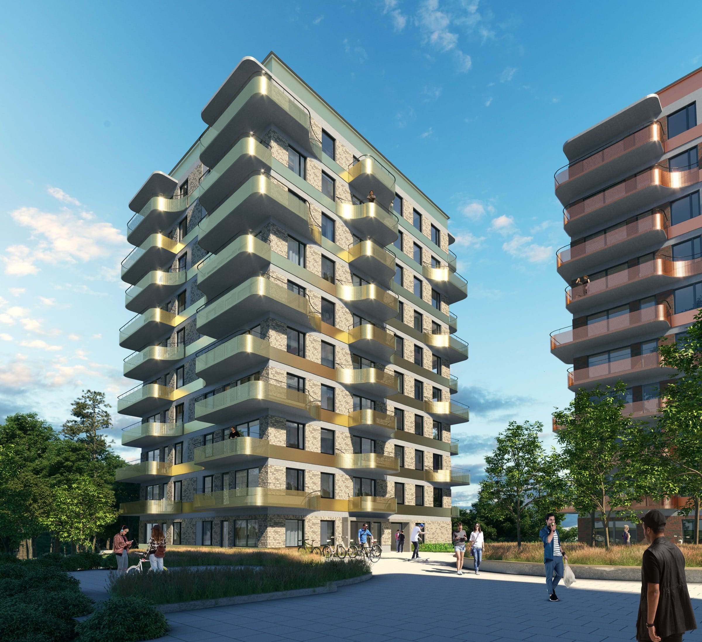 Etappen består av tre byggnader innehållande 147 hyresrätter. Ett av husen har delvis byggts ovanpå det P‐hus som Tornstaden tidigare har byggt. De tre husen har tre olika koncept – koppar, silver och guld. Dekorativa balkongräcken och tegelfasader har färger som följer de olika koncepten. Mellan husen har även en trivsam innergård skapats.