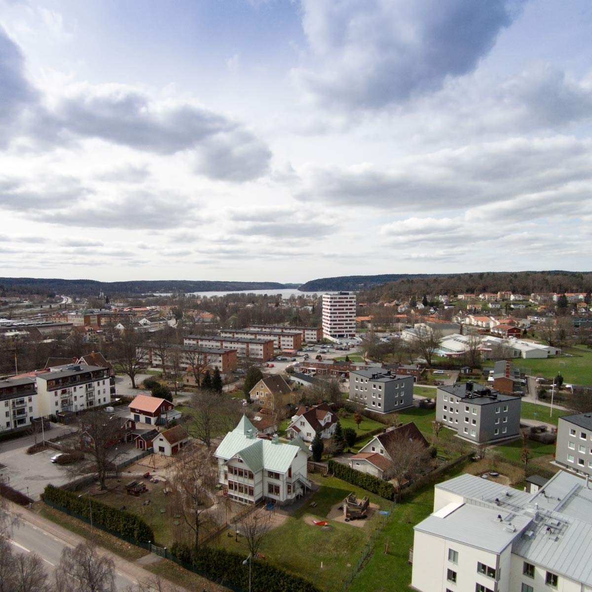 Mellan Vattenpalatset och centrum i Lerum har vi byggt Brf Utsikten. Det är en nybyggnation av 46 bostadsrätter med tillhörande garage. Byggnaden är tio våningar hög och i entréplanet finns även en uthyrningsbar lokal. Lägenheterna på de övre planen får utsikt över Lerum och sjön Aspen.